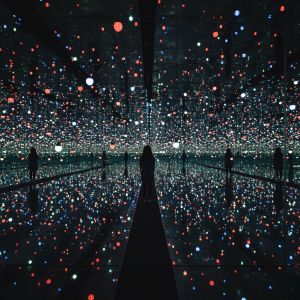 K těm nejpůsobivějším z jejích děl patří tzv. Infinity Mirror Rooms: zrcadlové místnosti, kde se hranice mezi realitou a odrazem rozplývá. Divák vstupuje do iluze nekonečna – zážitku na pomezí meditace a jemné dezorientace.